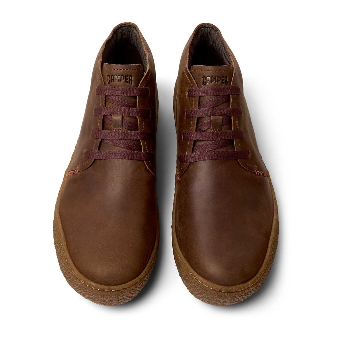 Καφέ ανδρικά μποτάκια από δέρμα μοσχαριού νουμπούκ με πάτους OrthoLite® Recycled™ και εξωτερικές σόλες από λάστιχο.